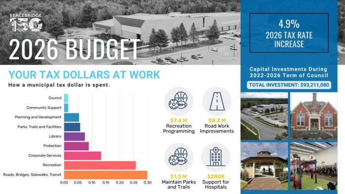 “During this term of Council, the Town has made a generational investment of nearly $100 million, positioning Bracebridge extremely well for the future. The 2026 budget continues our responsible, phased approach to funding major projects, maintaining affordability, and ensuring we remain on a sustainable path. This budget is about striking the right balance between affordability and performance to ensure Bracebridge can continue delivering the reliable services and strong infrastructure our community depends on.”