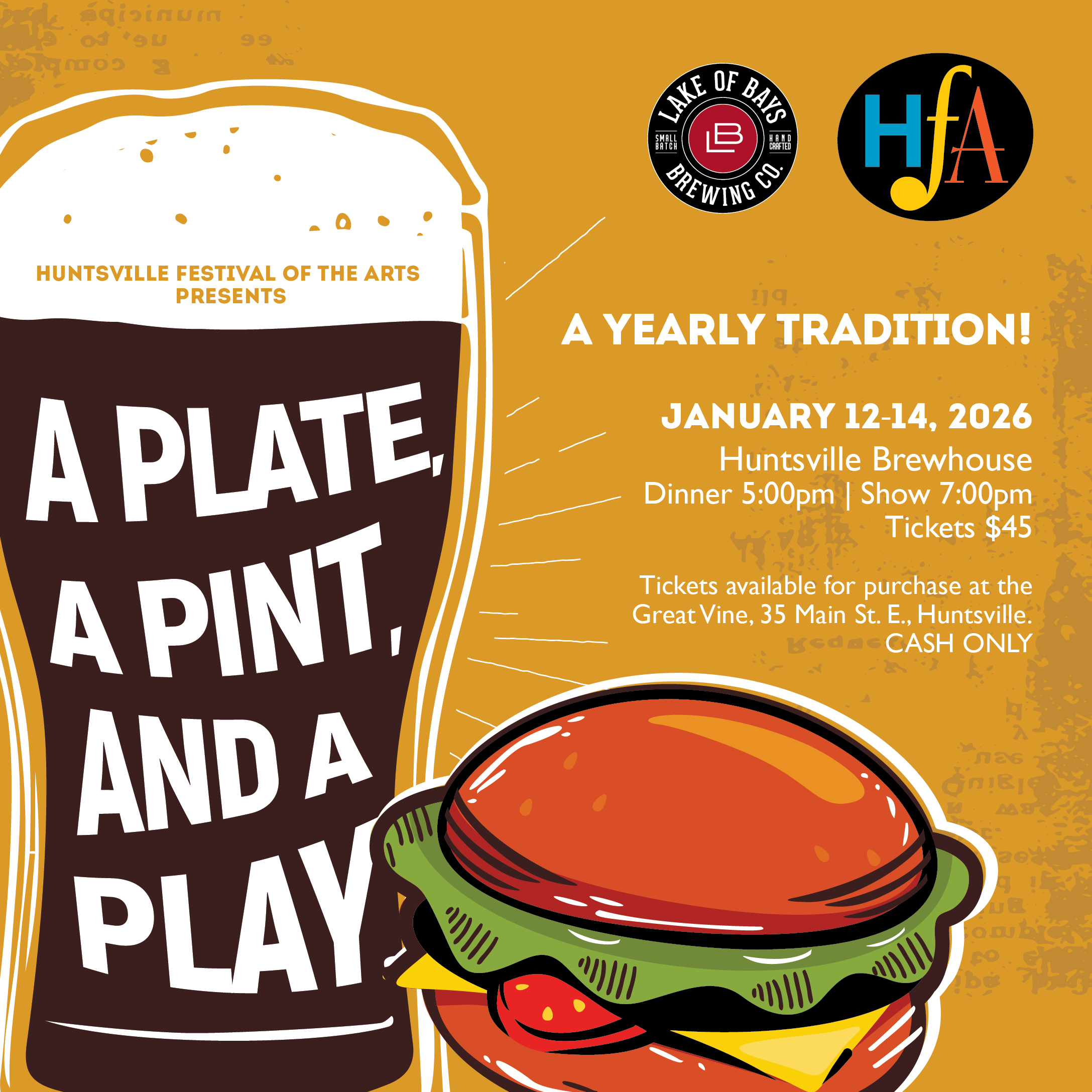 The Huntsville Festival of the Arts is thrilled to announce the return of one of the community’s favourite winter traditions. From January 12–14, 2026, audiences are invited to the Huntsville Brewhouse for three entertaining evenings filled with theatre, great food, and warm company.
