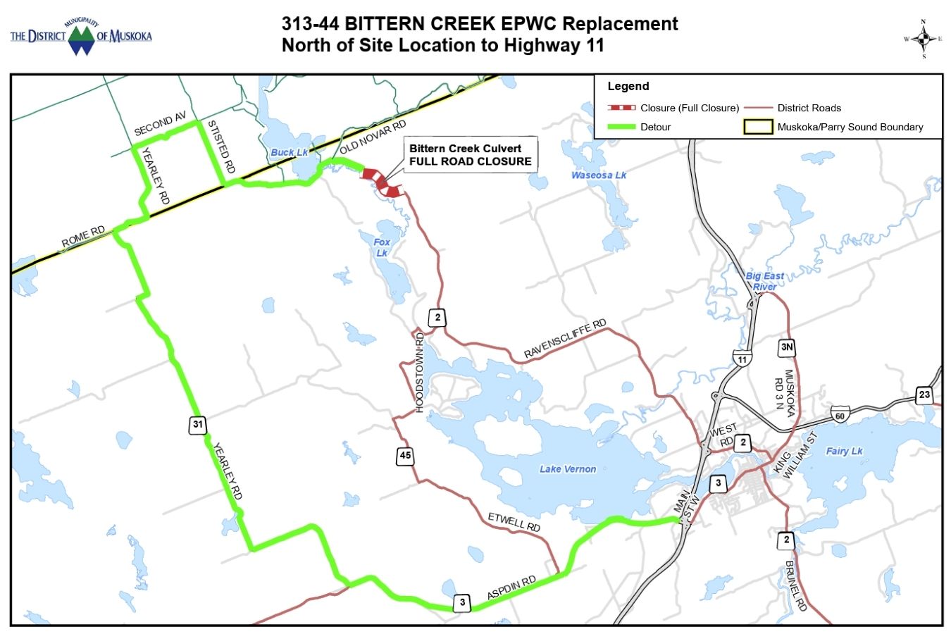 - Updates: The District is committed to keeping the community informed throughout construction. To stay informed, visit www.muskoka.on.ca/roads.