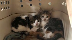 Seymour cautioned the adopters that the cats may hide in the carrier for a few hours, if not longer, when they first arrived at their new home.