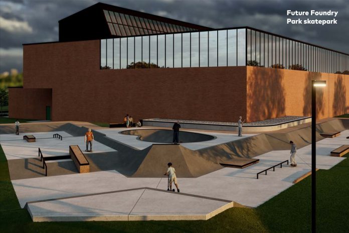 The Foundry Park skatepark is the first phase of the project to get underway. This long-anticipated, community-driven amenity will soon begin taking shape at the site with groundbreaking expected in early May.