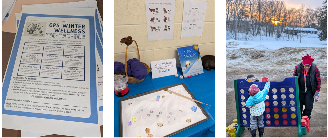 The evening kicked off with a live performance by the GPS Choir, followed by indoor winter art stations, family-oriented games, and a photobooth. Attendees also utilized the school’s outdoor space for snowshoeing and a Book Walk, which integrated literacy with physical activity.