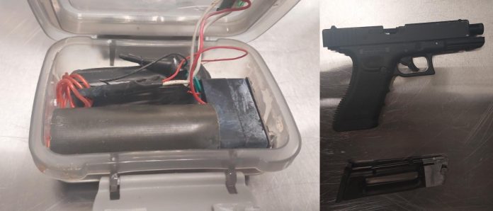 During the interaction, officers had grounds to believe that person was in possession of weapons. The suspect resisted arrest but was successfully handcuffed. A subsequent search revealed a Glock-style handgun and a homemade electrical weapon concealed in their clothing. The suspect was transported to the detachment, where it was discovered they were bound by an Undertaking with conditions not to possess weapons. Further examination confirmed the firearm was a pellet gun, despite its resemblance to a real handgun.