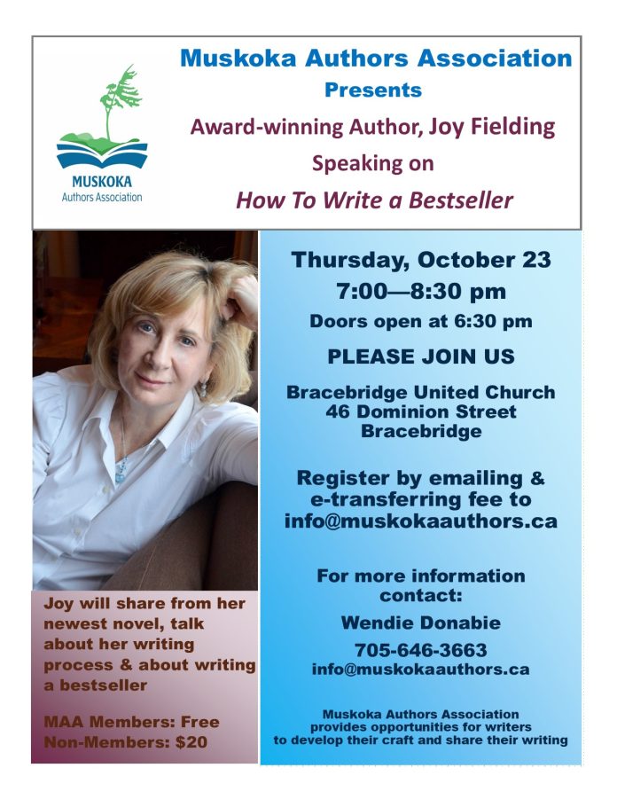 She’s the queen of psychological suspense, a New York Times bestselling author whose novels have sold millions—and on October 23rd, Joy Fielding is coming to Muskoka.