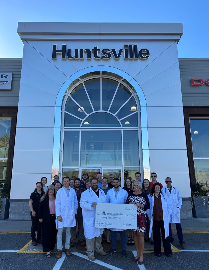 From August 1–31, $200 from every vehicle sold at Huntsville Dodge, Huntsville Honda, and Hyundai of Muskoka was donated to a hospital of the buyer’s choice: Huntsville Hospital Foundation, South Muskoka Hospital Foundation, or West Parry Sound Health Centre.