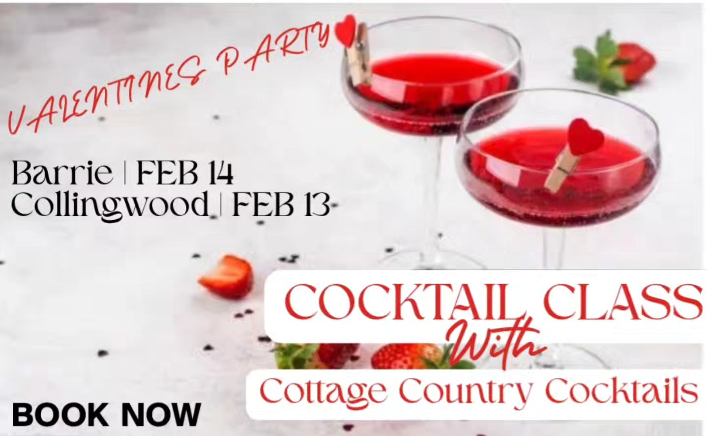 Join Cottage Country Cocktails for a hands-on Valentine’s cocktail class featuring 3 delicious, Valentine’s-inspired cocktails.