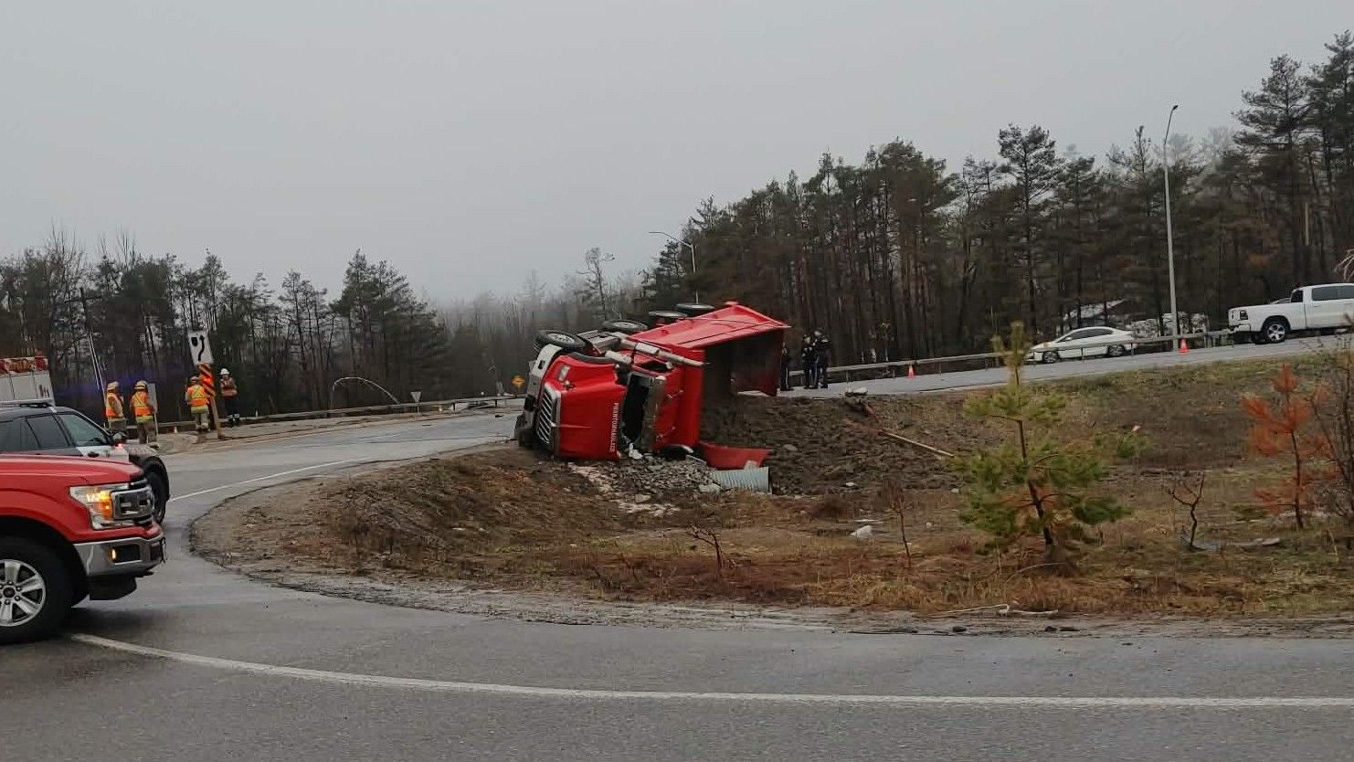 On Thursday, April 16, 2026, at approximately 7:30 a.m., an unmarked Ontario Provincial Police (OPP) vehicle with its emergency lights activated was merging onto Highway 11 northbound from Forestview Road when a collision occurred involving a dump truck and a school bus. The driver of the dump truck and three youths from the school bus were transported to a local hospital.