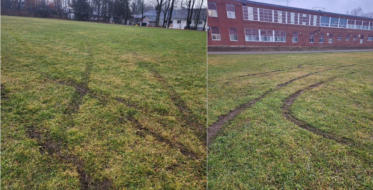 On Monday, November 24, 2025, just before 7:00 p.m. Bracebridge OPP officers responded to a report from school staff at Muskoka Beechgrove Public School, located on Muskoka Beach Road in Gravenhurst, that a vehicle was driving on their playground, doing donuts and causing damage to the grass. The school team at Gravenhurst High School later noticed similar damage to their sports field that occurred the same evening.