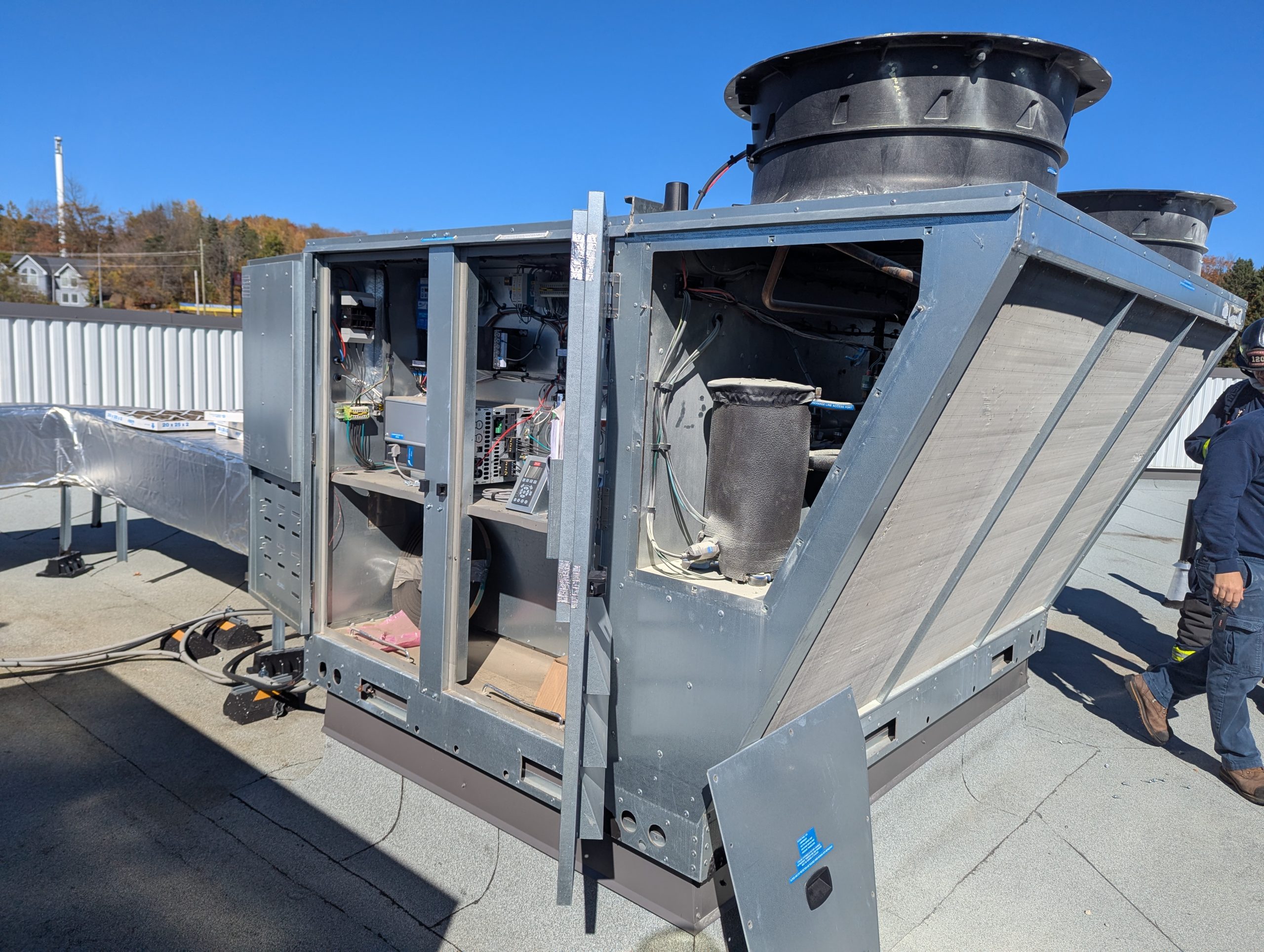 On October 9, 2025, just after 12:00 p.m., the Huntsville/Lake of Bays Fire Department responded to Muskoka Landing Long Term Care on Rogers Cover Drive for an activated fire alarm. Prior to the fire alarm being activated using a pull station by staff, a faint smoke smell was observed in the building. A member of the building’s maintenance personnel went to investigate the air handling equipment on the roof at which point they discovered a fire within the motor of an air handling unit.