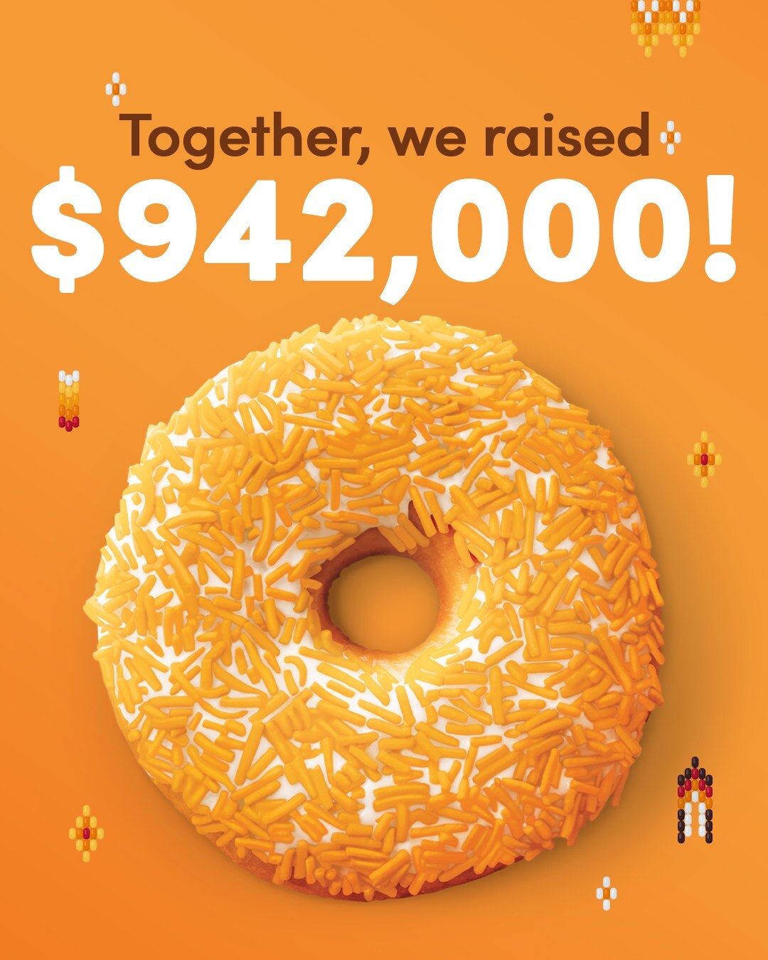 Tim Hortons and its restaurant owners are proud to announce that $942,000 was raised for Indigenous organizations through its fifth annual Orange Sprinkle Donut campaign.
